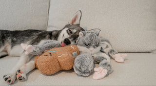 Hugaboos™ are fun snuffle toys with extra-long limbs that can wrap around other plush or puzzle toys, turning ordinary play into extraordinary experiences. Hide treats in their pockets, or tie their limbs for a game of hide and seek. Play around with different knot types and create the perfect hug!