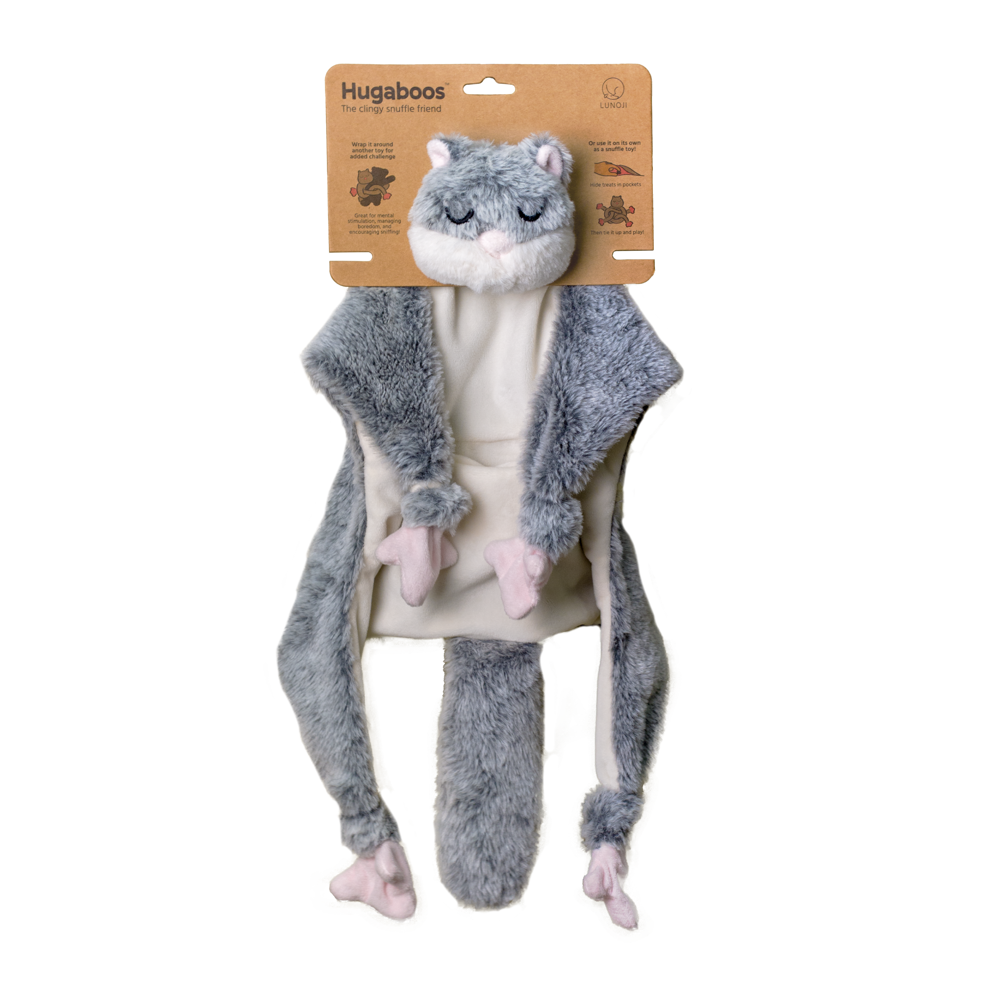 Hugaboos™ are fun snuffle toys with extra-long limbs that can wrap around other plush or puzzle toys, turning ordinary play into extraordinary experiences. Hide treats in their pockets, or tie their limbs for a game of hide and seek. Play around with different knot types and create the perfect hug!