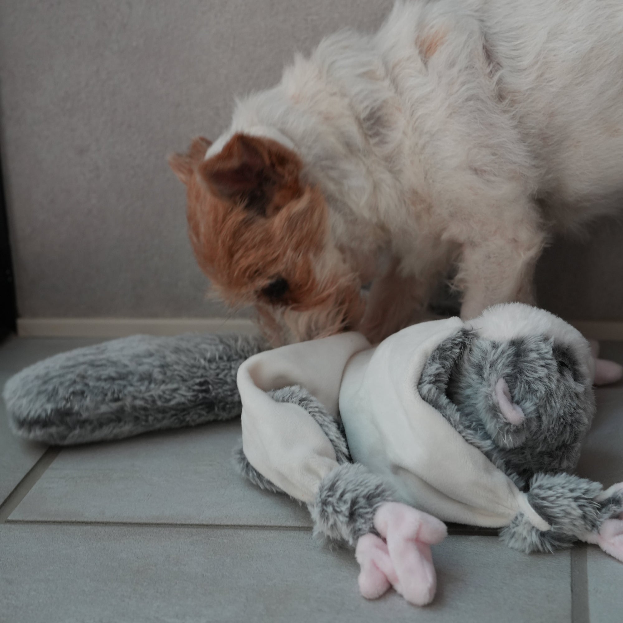 Plush faux fur and squeakers mimic real prey and provide a satisfying sensory experience.
