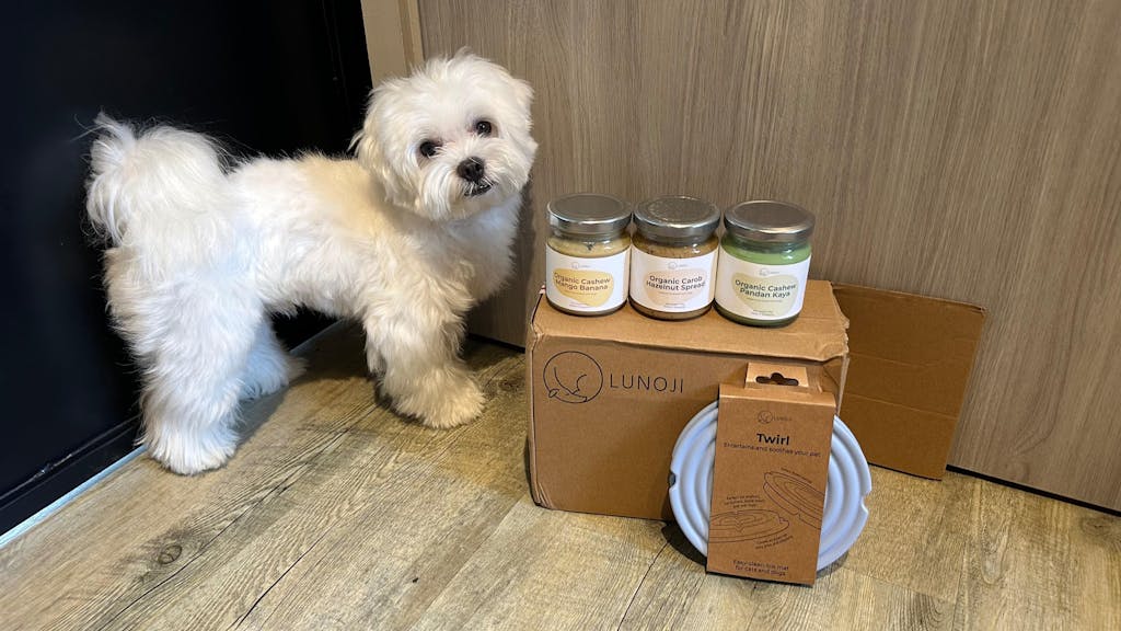 Loved the pastel colour as it fits in with the neutral colours of our home! Doggo also enjoyed her first lick of the Twirl, though this doggo is extremely lazy and took several breaks in between before going back to finish up more of the almond butter I bought for her 🤣 it did succeed in keeping her busy for a long time, so I think it worked as intended (for me at least)!