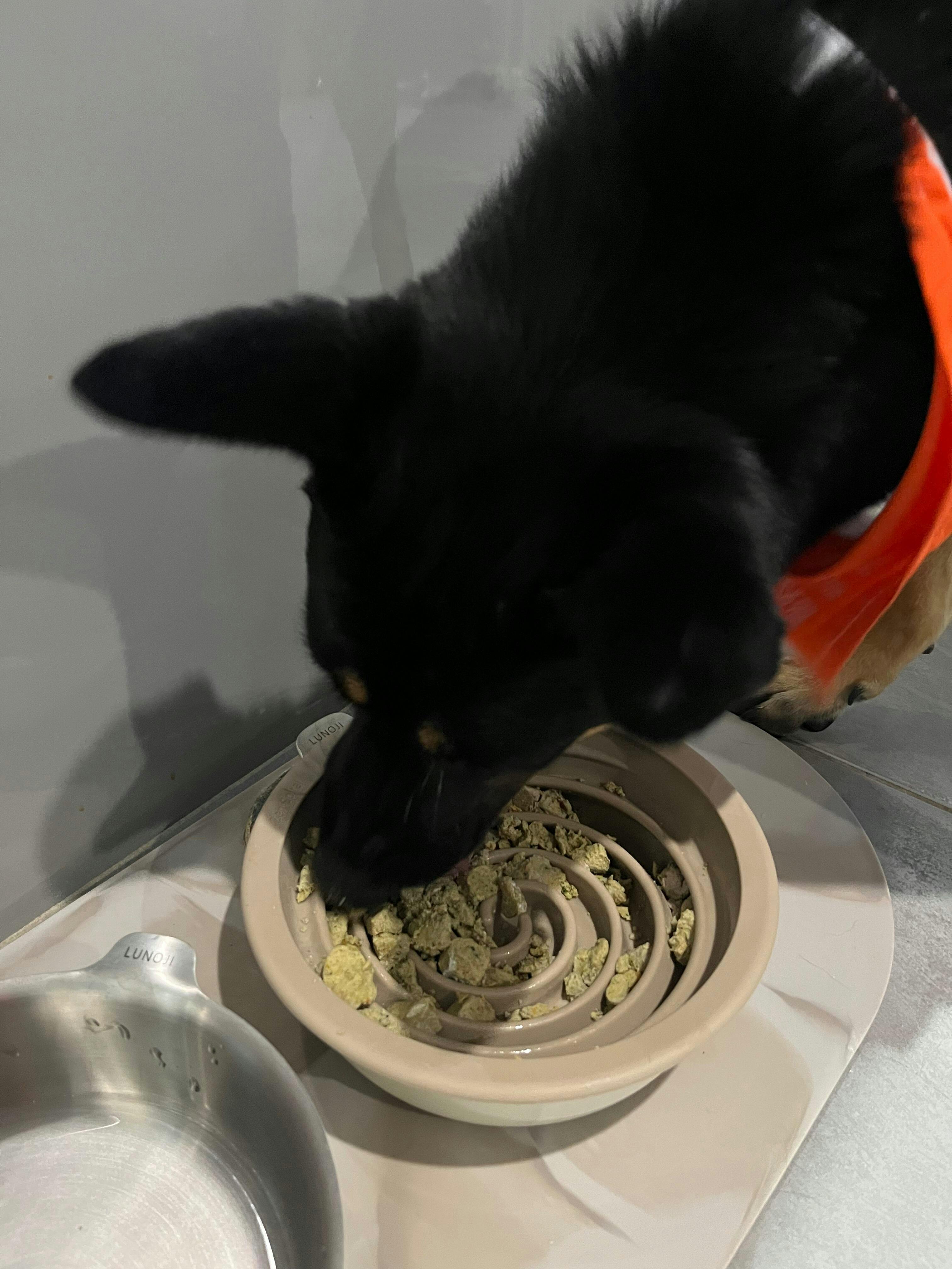We’re trying to find perfect everyday slow feeder which is not to stressful for my pup, pretty big grain can fit and easy to clean. And this is it!!! My boy finishes his meal a little slower and seems to love it. I use “pet kind” as his meal and its grain is rather big, but it fits perfectly with zen bowl's spin. Also that spin is very easy to clean since I can slide my finger to every groove. It can be used as an enrichment bowl and also everyday meal bowl. PERFECT!!!
