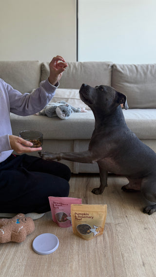 Made with just three human-grade ingredients, our gently air-dried Strawberry & Thyme Pork and Pumpkin & Rosemary Beef are a guilt-free way to indulge your dog.